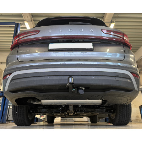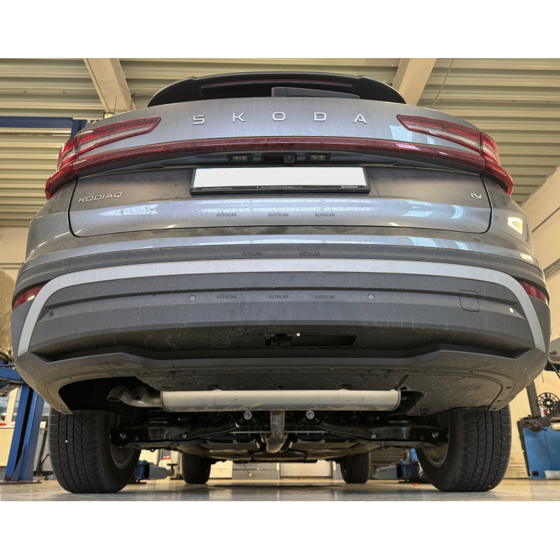 Für Besitzer des neuen Skoda Kodiaq der zweiten Generation (Modelle ab Baujahr 02/2024), die kompromisslose Funktionalität bei gleichzeitigem Erhalt des 100% sauberen Designs ihres SUVs fordern, ist dieser vertikal abnehmbare Automatik-Bajonettverschluss des Herstellers AUTO-HAK die absolute Referenzlösung. Dank des innovativen senkrechten "Click-Clack"-Systems bleiben die Aufnahme und die wegschwenkbare Steckdosenhalterung nach dem Abnehmen des Kugelkopfes vollständig hinter der Heckschürze verborgen. Ihr neuer Kodiaq bewahrt seine robusten und eleganten Linien ohne jede sichtbare technische Beeinträchtigung. Entscheidungshilfe gesucht? Unser Experten-Ratgeber hilft Ihnen: Lohnt sich der Aufpreis für ein unsichtbares Vertikalsystem?