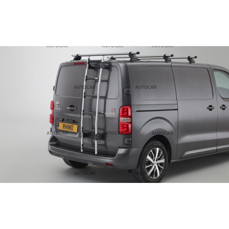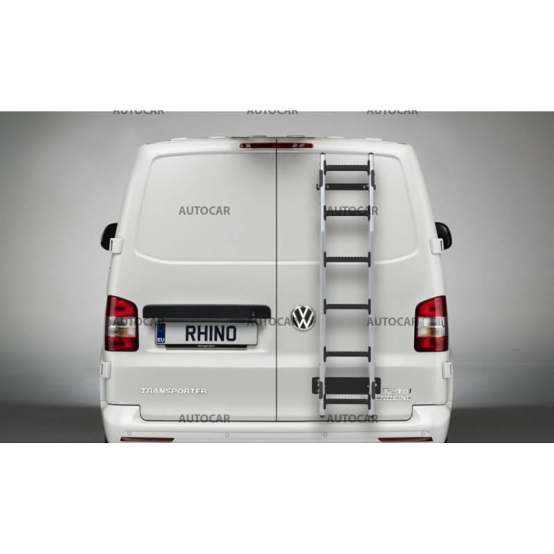 Rhino-Aluminiumleiter – Die Aluminiumleiter vereint Stärke und Stil, wodurch sie eines der langlebigsten und ästhetischsten Dachsysteme für Nutzfahrzeuge – Transporter – darstellt. Dank der Verwendung von hochfesten Aluminiumgeländern und verstärkten Glasfasern ist die Aluminiumleiter ein extrem leichtes Zubehör, das sich auch ideal zur Maximierung der Kraftstoffeinsparung eignet. Es ist nicht für Transporter mit Fenster an der Hecktür geeignet.