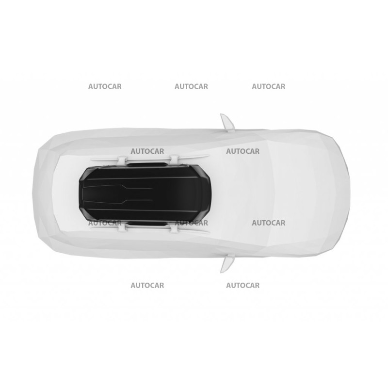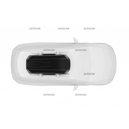 Dachbox mit stilvollem Design und großzügigem Stauraum. Der robuste Deckel ermöglicht ein einfaches Öffnen und Schließen.