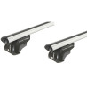 Aluminiumträger (113 cm) mit Tragfähigkeit von 75 kg in Silber. Elegantes und robustes Dachträgersystem, vollständig abschließbar, zur Montage auf offenen Dachträgern.