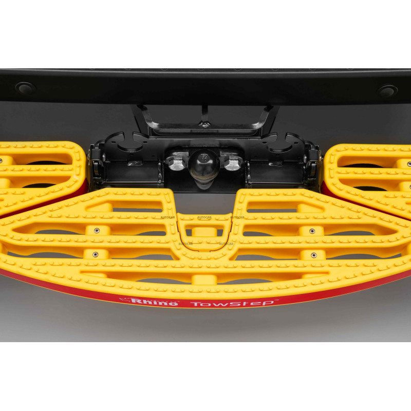 Der Einstiegsstufe für Fahrzeuge mit Anhängerkupplung in voller Breite, mit einem einzigartigen einfach abnehmbaren Mittelteil. Kompatibel mit einer Vielzahl von Anhängerkupplungen in der gesamten Europäischen Union. Rutschfeste Oberfläche für sicheren Halt, mit einem robusten Stahlrahmen, der dank eines einzigartigen doppelten elektrolytischen Grundierungsprozesses maximale Korrosionsbeständigkeit gewährleistet. Seitliche Flügelstufen ermöglichen einen bequemen Neigungswinkel von bis zu 110° für angeschlossene Anhänger. Erhältlich in Schwarz und Gelb. Verfügbar mit oder ohne Rückfahrsensoren und Connect+ Funktionen. Umfassenden internen Belastungstests unterzogen, um maximale Zuverlässigkeit und Sicherheit zu gewährleisten.