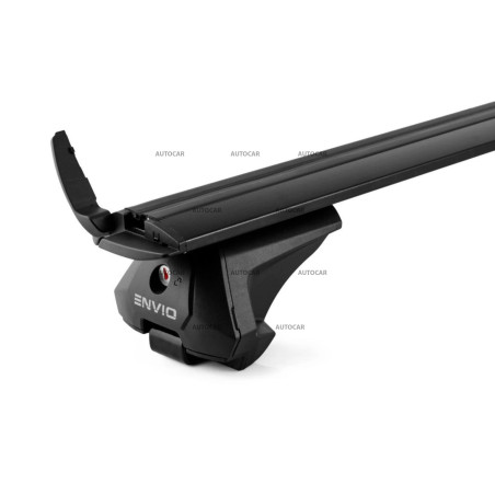 Universeller, aerodynamischer ENVIO-Träger für Fahrzeuge mit integrierten und erhöhten Gleitkufen (Hagus). Aluminiumträger mit 120 cm Länge und einer überdurchschnittlichen Tragfähigkeit von 90 kg in Schwarz. Vollständig abschließbares System, zertifizierte Sicherheit.