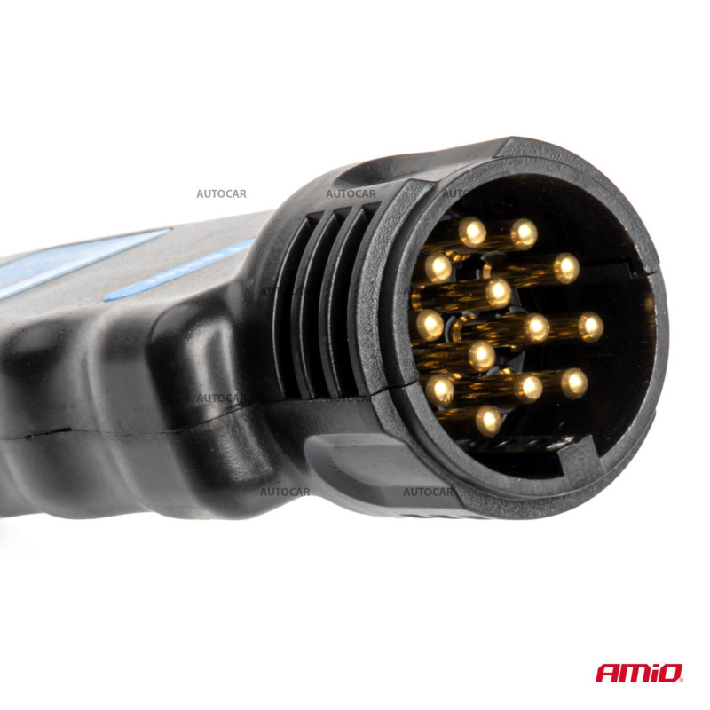 Schnelle und einfache Steuerung der Beleuchtungsanlage am Fahrzeug und Anhänger über den 13-poligen Stecker. Der Tester wird einfach in die zu prüfende Steckdose oder den zu prüfenden Stecker gesteckt, der Prüfknopf gedrückt und über die LED-Anzeige erfolgt eine eindeutige Diagnose, Fehler werden direkt angezeigt.