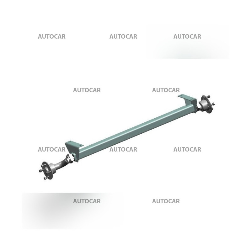 Ungebremste Achse für den Viki- anhänger des Herstellers Wiola mit einem Abstand der Befestigungslöcher 1180 mm, Breite durch die Naben 1555 mm und Verschraubung 4x100.