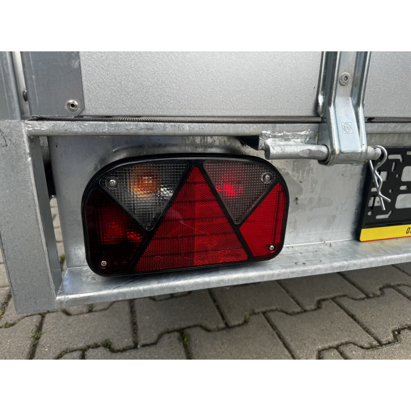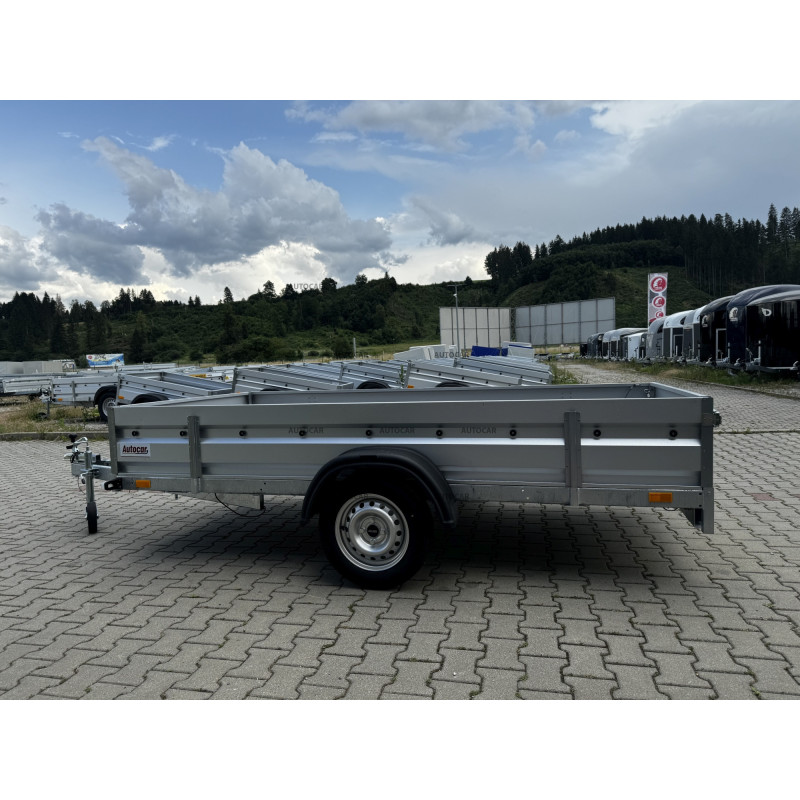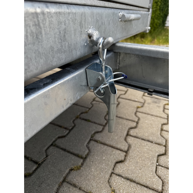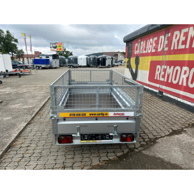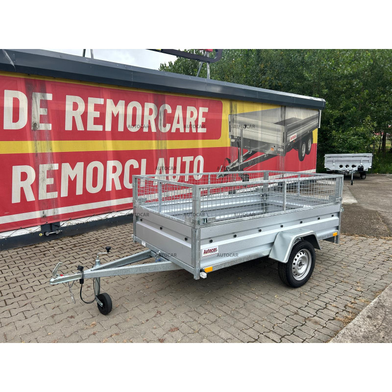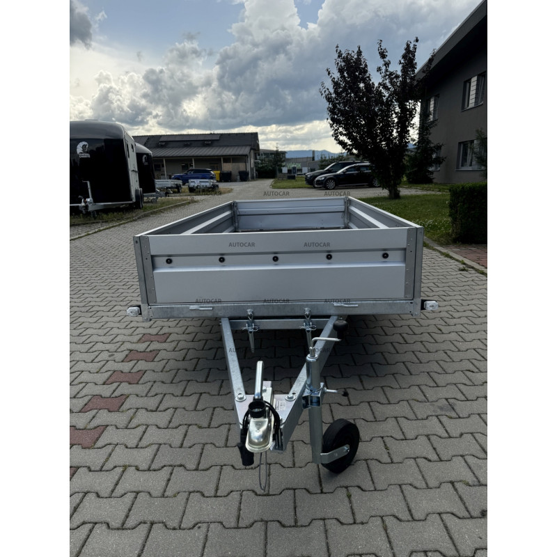 Dieser einachsige ungebremste kippbare Anhänger mit Netzaufbau und einer verstärkten Achse auf 1300 kg, verzinkten Bordwänden, kombiniert Haltbarkeit und Praktikabilität. Er hat einen Sperrholzboden, der eine zuverlässige Unterstützung der Ladung bietet. Mit seinem geschweißten Rahmen und drei Querstreben ist dieser Anhänger bereit für anspruchsvolle Aufgaben.
