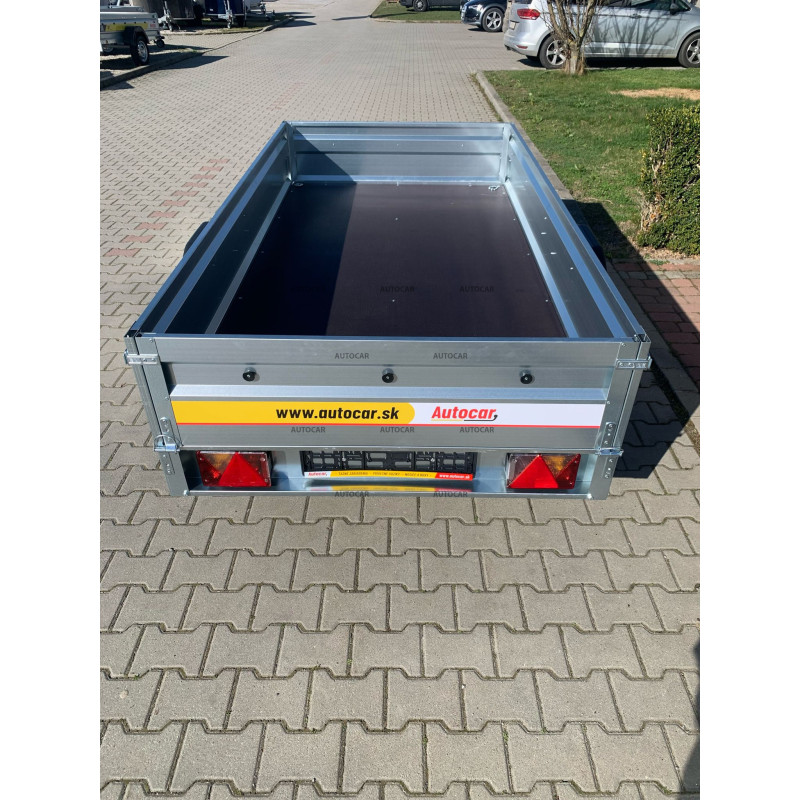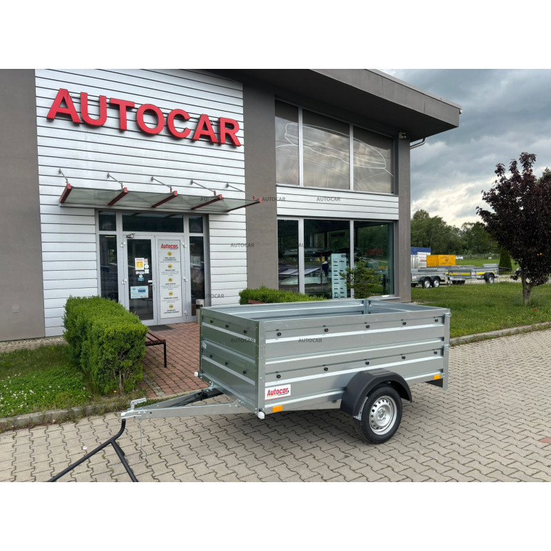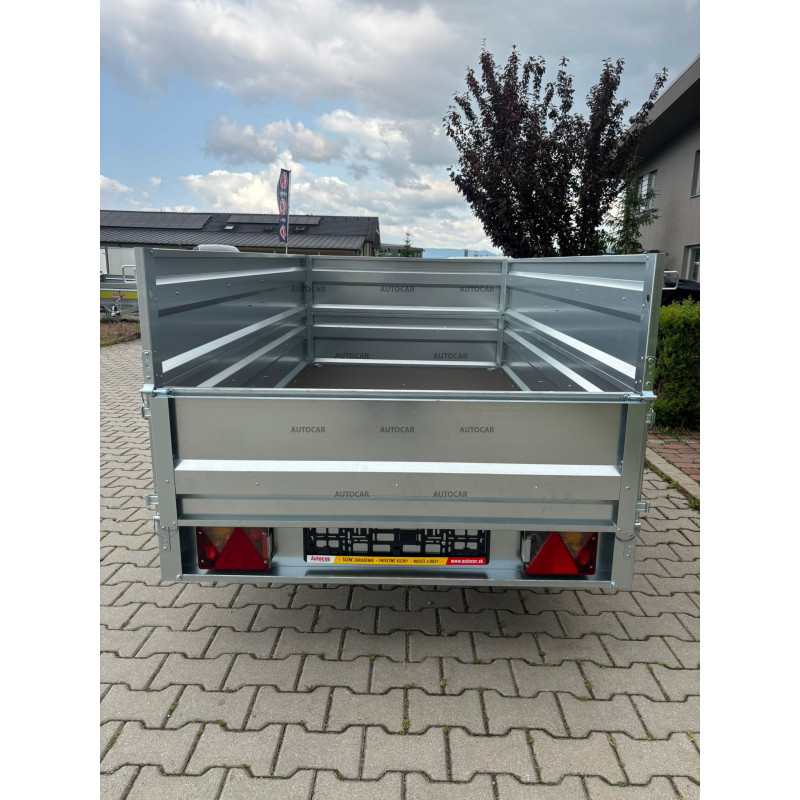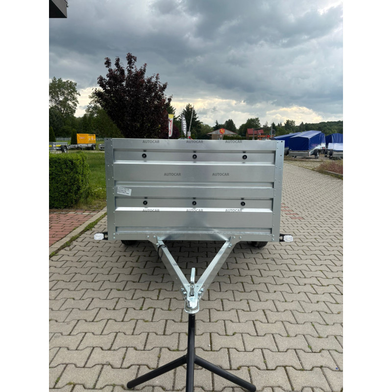 Einachsiger, ungebremst Anhänger mit Seitenwänden, Flachplane, Stützrad und 6 cm hoher Vollrahmenkonstruktion mit drei Querverstärkungen sorgt für hohe Festigkeit und Stabilität auch bei voller Beladung. Vier Verankerungsösen im Boden sorgen für eine sichere Befestigung der Ladung. Der Anhänger ist mit robusten Profilwänden aus verzinktem Blech ausgestattet, die eine lange Lebensdauer und Korrosionsschutz gewährleisten.