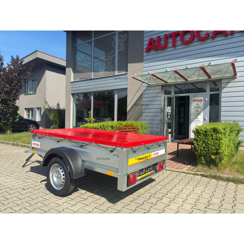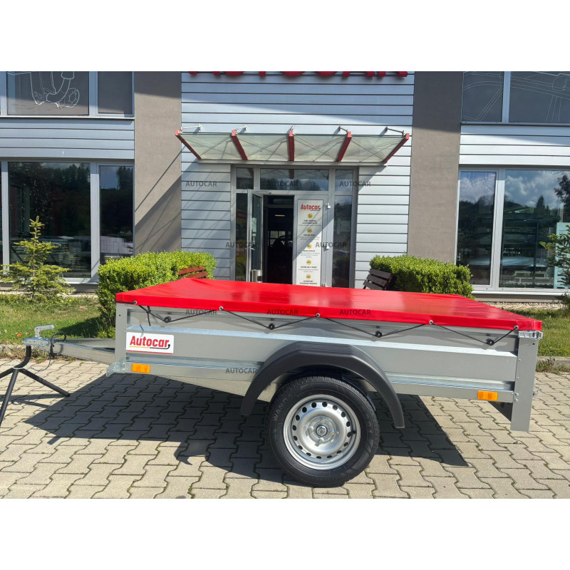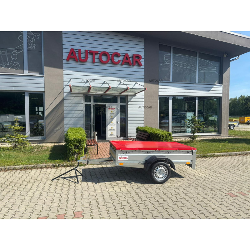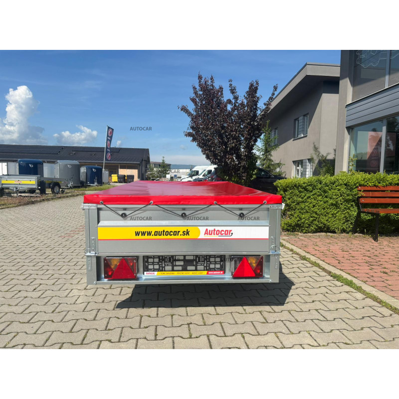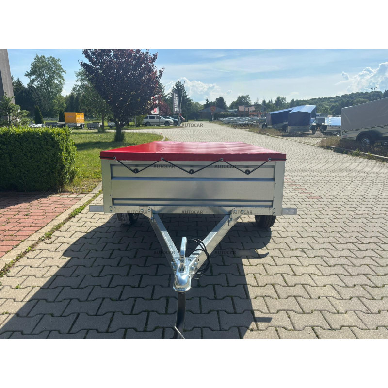 Einachsiger, ungebremst Anhänger mit Plane in Vollrahmenkonstruktion mit 6 cm Höhe und zwei Versteifungen sorgt für hohe Festigkeit und Stabilität auch bei voller Beladung. Zur sicheren Sicherung der Ladung befinden sich vier Verzurrösen im Boden. Der Wagen ist mit stabilen, profilierten Seitenwänden aus verzinktem Blech ausgestattet, die eine lange Lebensdauer und Korrosionsschutz gewährleisten. Die hintere bordwand lässt sich öffnen und abnehmen , was das Be- und Entladen von Gütern erleichtert.