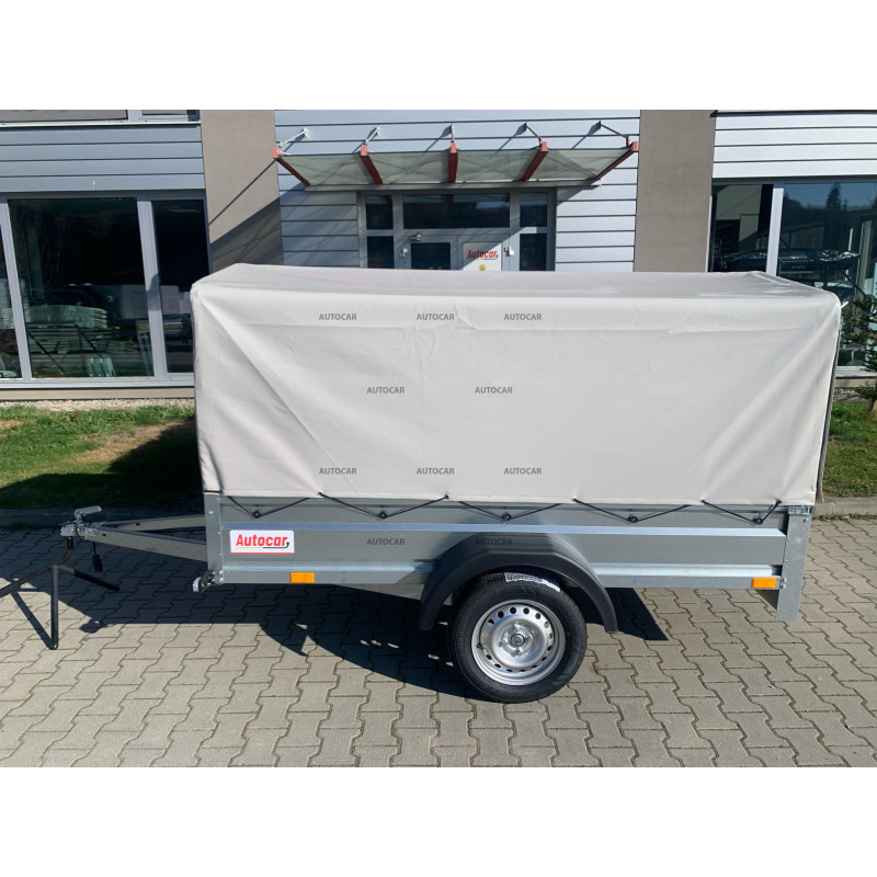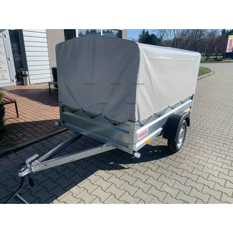 Einachsiger, ungebremst Anhänger mit einer Plane von 120 cm Höhe ab Anhängerboden und einer 6 cm hohen Vollrahmenkonstruktion mit vier Verstärkungen sorgt für hohe Festigkeit und Stabilität auch bei voller Beladung. Vier Verankerungsösen im Boden dienen zur sicheren Befestigung der Ladung. Der Anhänger ist mit robusten, profilierten Seitenwänden aus verzinktem Blech ausgestattet, die eine lange Lebensdauer und Korrosionsschutz gewährleisten.