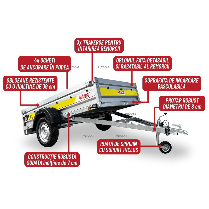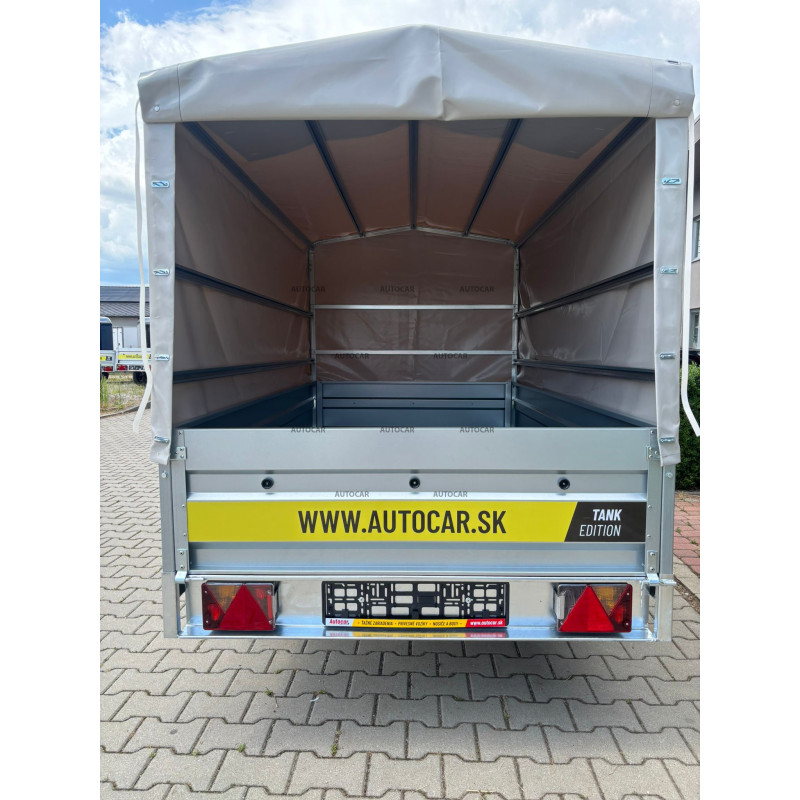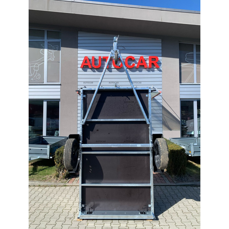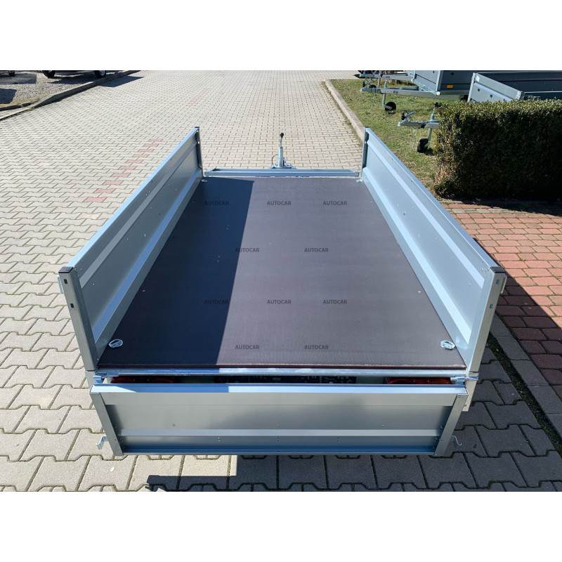 Der faltbare eine-achse ungebremst anhänger mit einer Plane mit einer Höhe vom Anhängerboden 140 cm und einem robusten geschweißt Rahmen von 7 cm mit 3-facher Querverstärkung stellt eine zuverlässige Lösung für den Transport jeglicher Ladung dar. Sein U-Profil-Rahmen und seine C-Profil-Deichsel sind aus bis zu 2,5 mm dickem Material hergestellt. Seine breite Ladefläche mit den Abmessungen 2430 x 1330 und eine bordwände von 390 mm, aber das Wichtigste ist bordwände von bis zu 1 mm , die Festigkeit und Haltbarkeit garantieren. Dieser LKW ist mit einem wasserfesten Sperrholzboden mit Bodenösen ausgestattet. Die faltbare Struktur auf der 8 cm hohen Deichsel ermöglicht einfaches Be- und Entladen von Ladung, weshalb dieser Anhänger für verschiedene Transportanforderungen geeignet ist. Außer der Faltbarkeit verfügt anhänger auch über eine Frontöffnung und stützrad im Preis inbegriffen ist.