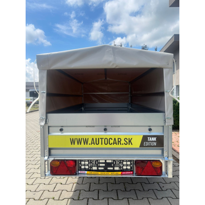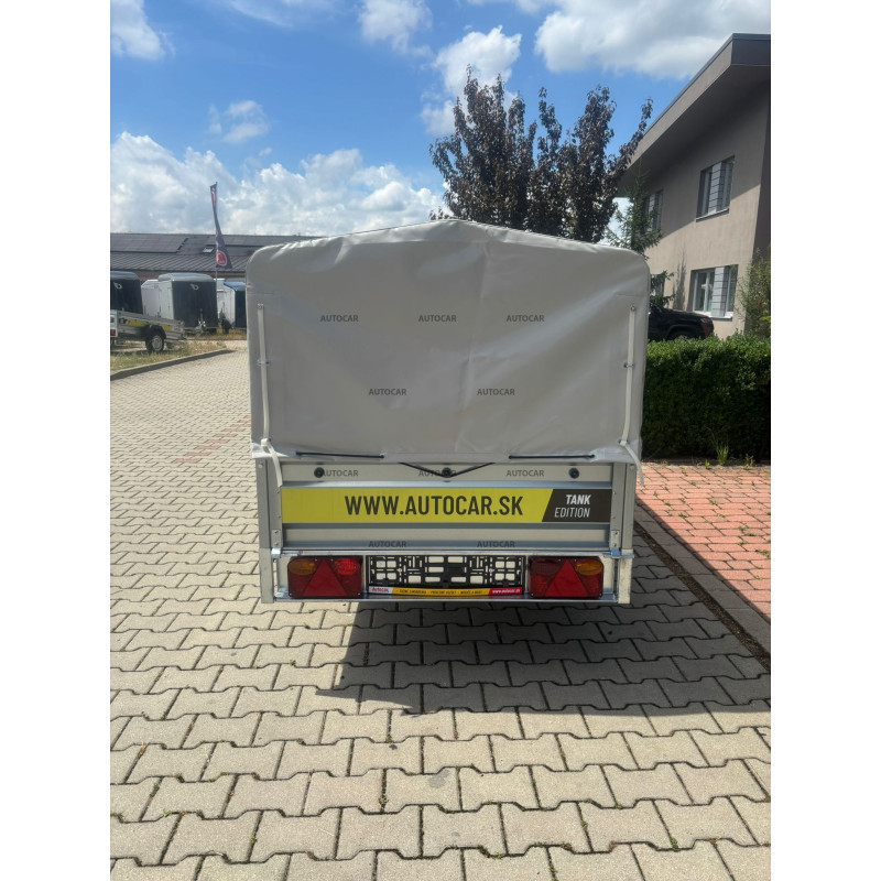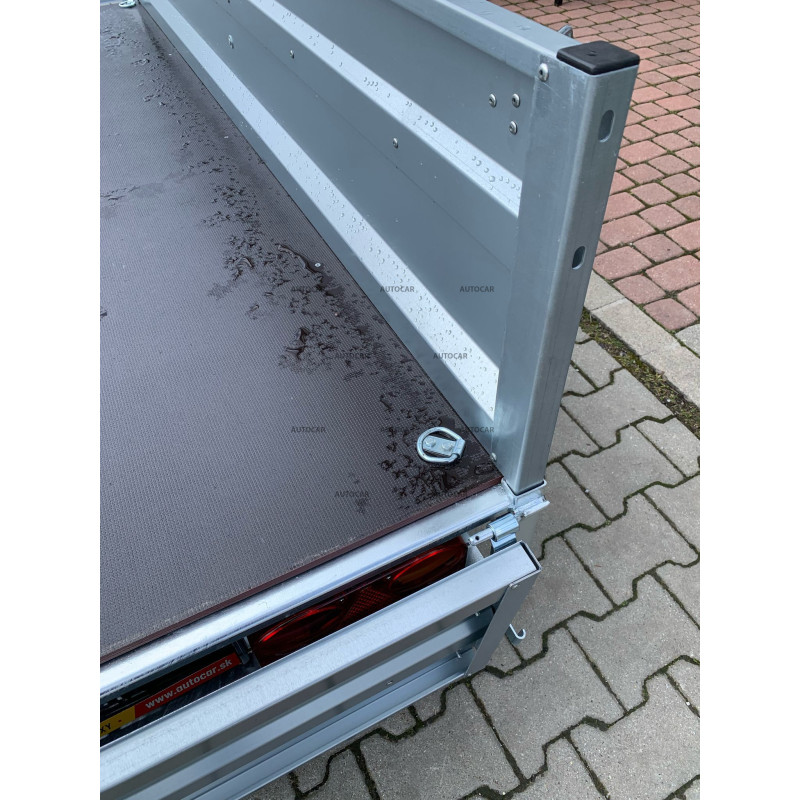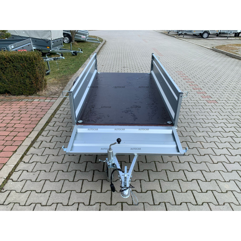 Robuster geschweißt eine-achse ungebremst anhänger mit einer Plane bis zu 100 cm über dem Anhängerboden und 3-facher U-Profil-Querverstärkung stellt eine zuverlässige Lösung für den Transport jeglicher Ladung dar. Seine breite Ladefläche mit den Abmessungen 2330 x 1120 und die bordwände beträgt 390 mm. Das Wichtigste aber sind die Dicke und das Profil bordwände von bis zu 1 mm, die Festigkeit und Haltbarkeit garantieren. Dieser Anhänger ist mit einem wasserfesten Sperrholzboden mit vier 6 cm hohen Bodenösen und C-Profil ausgestattet. Der Anhänger hat außerdem vordere und hintere bordwände sowie stützrad mit Halterung, die im Preis inbegriffen sind. Die vorderen und hinteren bordwand sind abnehmbar und der gesamte Anhänger ist zum Schutz vor Korrosion feuerverzinkt. Die elektrische Installation am Anhänger ist standardmäßig 7-polig ohne Rückwärtsgang. Das Umklappen der Ladefläche ist gegen Aufpreis möglich.