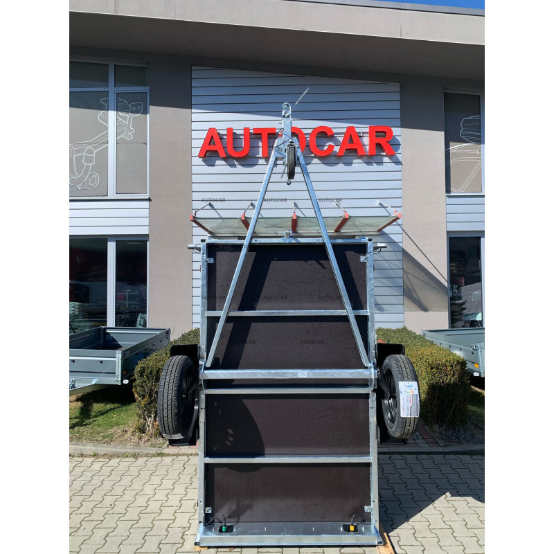 Der faltbare eine-achse ungebremst anhänger mit einer Plane mit einer Höhe vom Anhängerboden von 120 cm und einem robusten geschweißt Rahmen von 7 cm mit 3-facher Querverstärkung stellt eine zuverlässige Lösung für den Transport jeglicher Ladung dar. Sein U-Profil-Rahmen und seine C-Profil-Deichsel sind aus bis zu 2,5 mm dickem Material hergestellt. Seine breite Ladefläche mit den Abmessungen 2060 x 1230 und eine bordwände von 390 mm, aber das Wichtigste ist bordwände von bis zu 1 mm , die Festigkeit und Haltbarkeit garantieren. Dieser LKW ist mit einem wasserfesten Sperrholzboden mit Bodenösen ausgestattet. Die faltbare Struktur auf der 8 cm hohen Deichsel ermöglicht ein einfaches Be- und Entladen von Ladung, wodurch dieser Anhänger für verschiedene Transportanforderungen geeignet ist. Außer der Faltbarkeit verfügt anhänger auch über eine nach vorne zu öffnende Vorderseite und stützrad im Preis inbegriffen ist.
