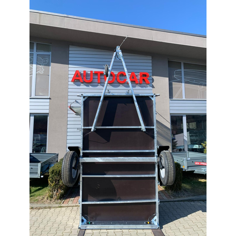 Der faltbare eine-achse ungebremst anhänger mit einer Plane mit einer Höhe vom Anhängerboden von 140 cm und einem robusten geschweißt Rahmen von 7 cm mit 4-facher Querverstärkung stellt eine zuverlässige Lösung für den Transport jeglicher Ladung dar. Sein U-Profil-Rahmen und seine C-Profil-Deichsel sind aus bis zu 2,5 mm dickem Material hergestellt. Seine breite Ladefläche mit den Abmessungen 2630 x 1330 und eine bordwände von 390 mm, aber das Wichtigste ist bordwände von bis zu 1 mm , die Festigkeit und Haltbarkeit garantieren. Dieser LKW ist mit einem wasserfesten Sperrholzboden mit Bodenösen ausgestattet. Die faltbare Struktur auf der 8 cm hohen Deichsel ermöglicht ein einfaches Be- und Entladen von Ladung, wodurch dieser Anhänger für verschiedene Transportanforderungen geeignet ist. Außer der Faltbarkeit verfügt anhänger auch über eine nach vorne zu öffnende Vorderseite und stützrad im Preis inbegriffen ist.