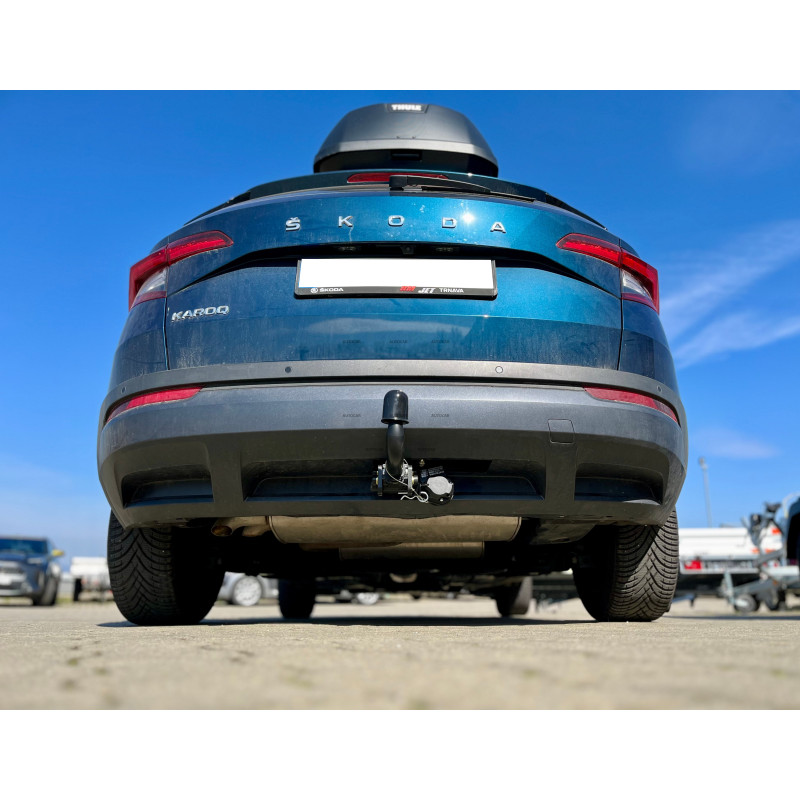 Nutzerfreundliche abnehmbare AHK für Skoda Karoq. Schnelle Hebelbedienung, robuste KTL-Beschichtung & 5 Jahre Garantie. Profi-Einbau an der Autobahn D5 (Žebrák).
