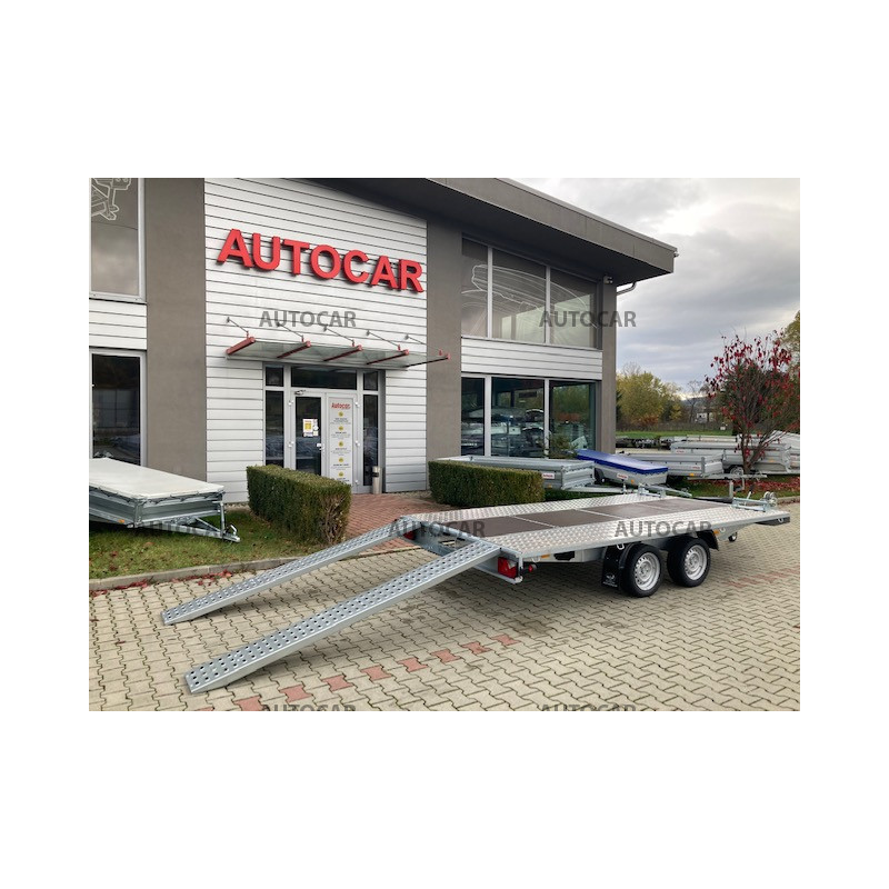 Autotransporter mit Rädern montiert unter der Ladefläche. Anhänger besteht aus robuste, feuerverzinkte, geschweißte Stahlkonstruktion, die garantiert eine lange Lebensdauer.