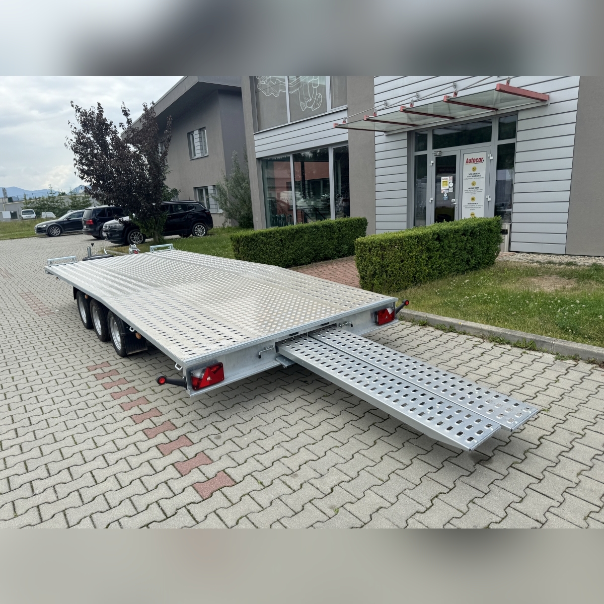 Der Anhänger mit zwie Achsen fur Autotransport mit den Räden unter die Laderfläche. Der Aufbau ist verzinkt und komplet geschweisst. Der Anhänger ist mit 2 Garantie und Konstruktionsgeschwindigkeit: 100 km/h.