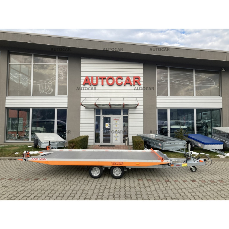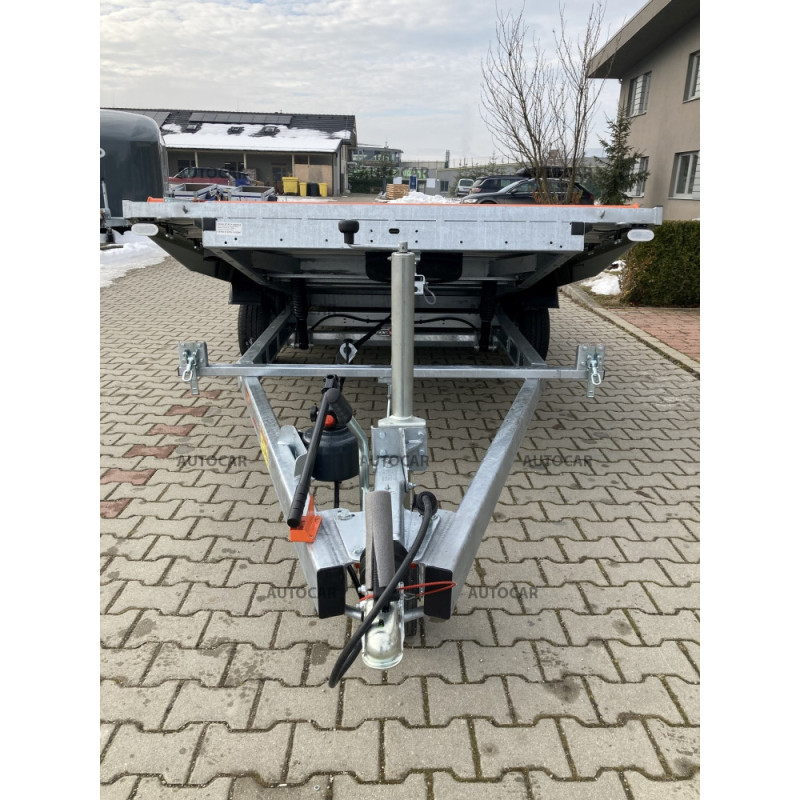 Aluminium-Anhänger für den Transport von Fahrzeugen. Gekippt wird mit Hydraulik. Anhänger besteht aus robuste, feuerverzinkte, geschweißte Stahlkonstruktion, die garantiert eine lange Lebensdauer. Serienausstattung : Stützrad, Reserverad,Unterlegkeil, hält die Räder, hydraulische Neigung . Trailer hat eine Garantie von 2 Jahren und ist für Tempo 100 ausgelegt km / h.