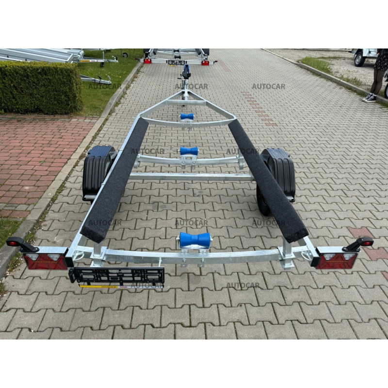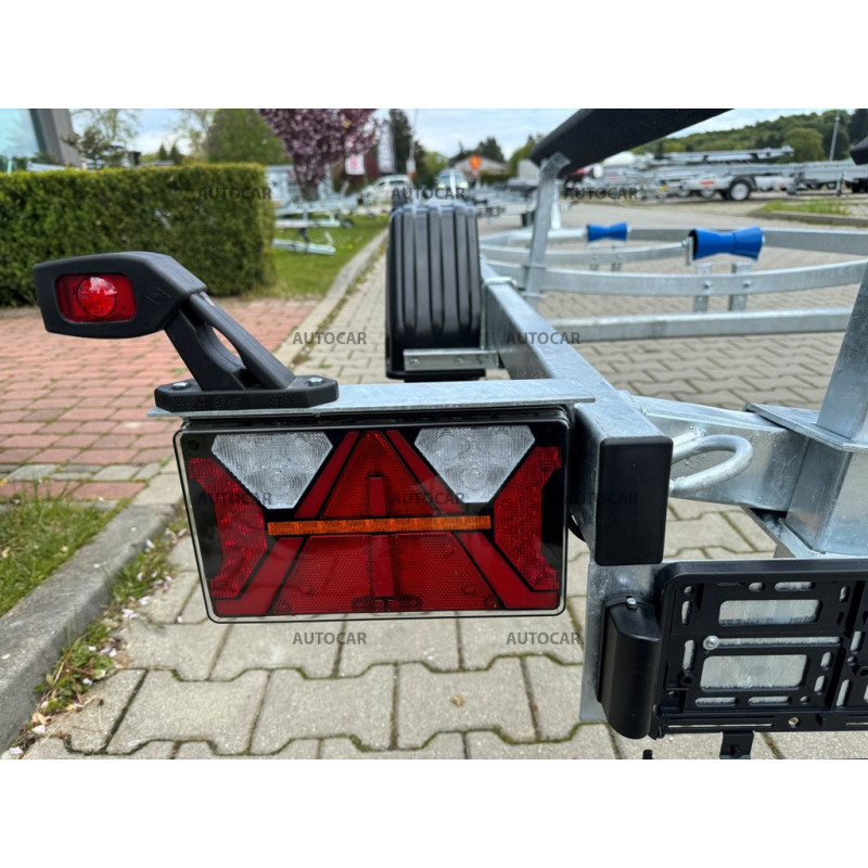 Einachsiger ungebremst Anhänger zum Transport von Booten mit einer maximalen Länge von 5600 mm. Der Stahlrahmen des LKW ist feuerverzinkt, was seine Lebensdauer auch unter anspruchsvollen Bedingungen verlängert. Zur Grundausstattung gehören eine hochwertige KNOTT Seilwinde mit Wickelgurt , 3 zentrale Kielschienen, 2 Stützkufen, komplette LED-Trailerbeleuchtung, Gummi-V-Anschlag am Schiffsbug, stützrad . Die Rücklichtrampe kann ohne Spezialwerkzeug auf raffinierte Weise entfernt werden, wodurch es möglich ist, den Anhänger direkt ins Wasser zu fahren und das Boot/Boot mit Hilfe einer Winde zu Wasser zu lassen. Sie können die Länge des Anhängers nach Bedarf anpassen. Auch Achse des Anhängers kann so positioniert werden, dass Sie den Schwerpunkt besser verteilen können.