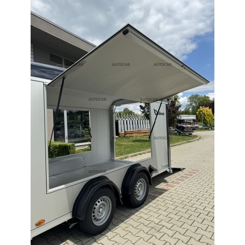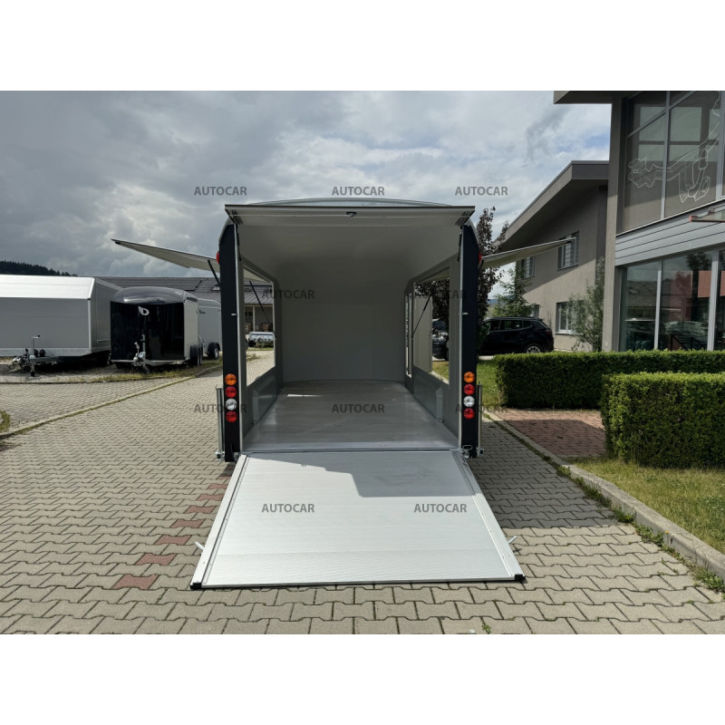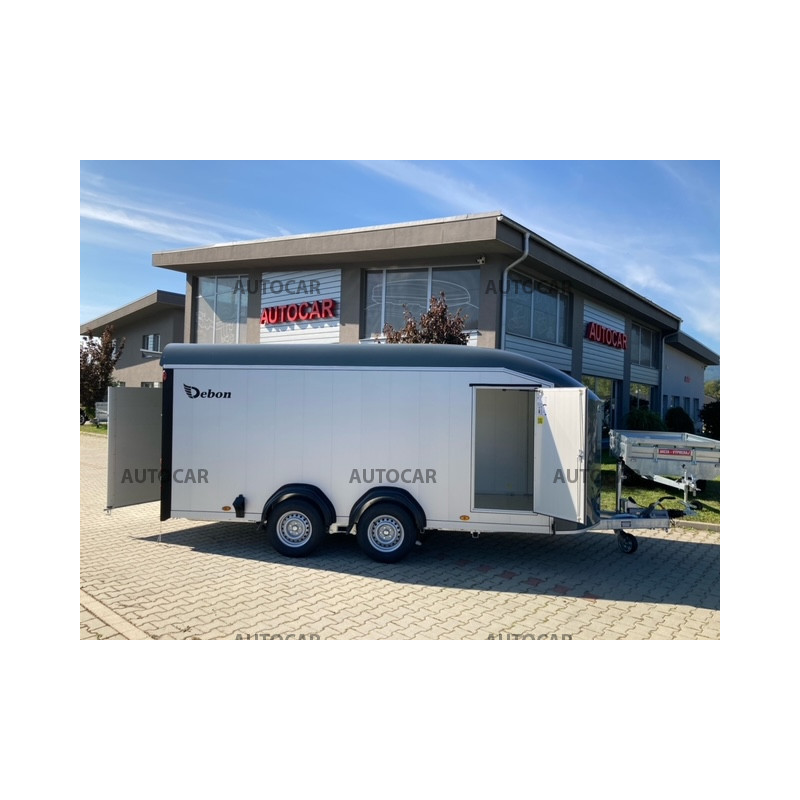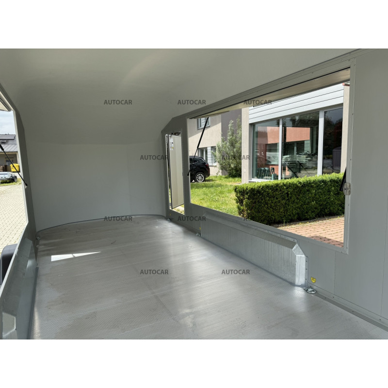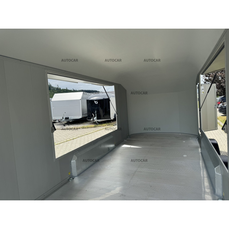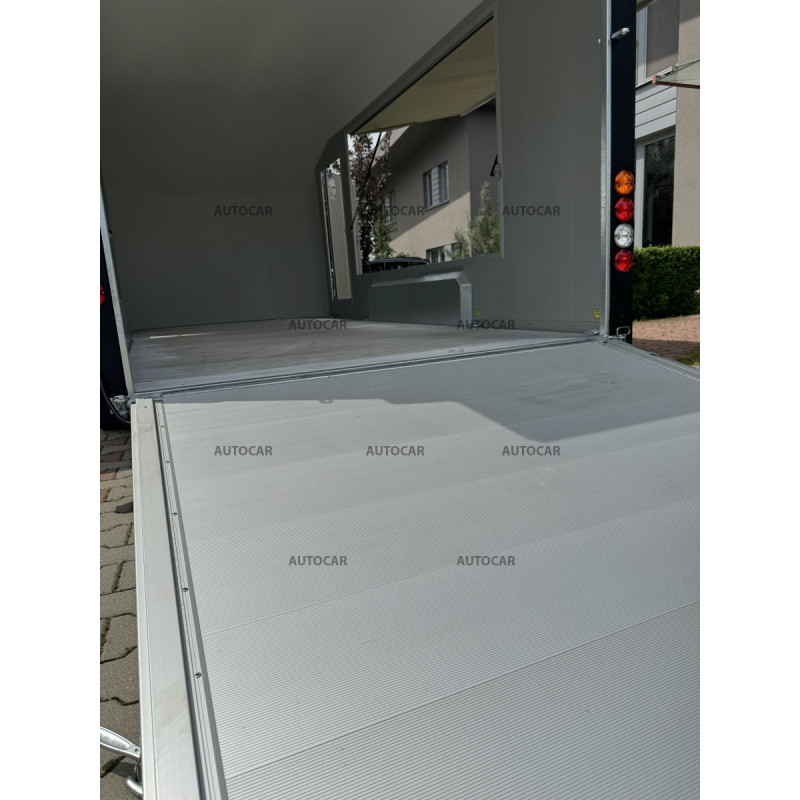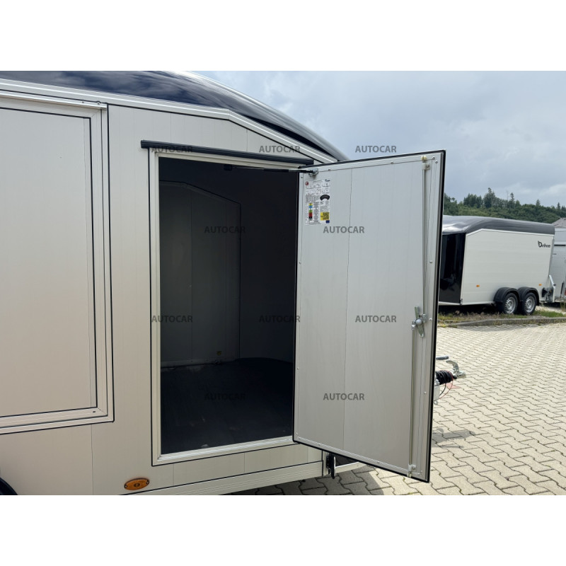 Der C900-Anhänger ist der zweitgrößte Anhänger der Marke Cheval Liberté. Er zeichnet sich durch außergewöhnlichen Komfort und hervorragende Fahreigenschaften aus. Er ist aerodynamisch gestaltet und verfügt über eine hintere Ladekombi-Rampe sowie seitliche Türen. Hergestellt aus Aluminiumpaneelen mit einer Dicke von 12 mm, verfügt er über ein Pullman 2-Fahrwerk des Herstellers mit unabhängig aufgehängten Rädern an Armen mit Federung und Dämpfung. Die Konstruktion besteht aus einem verzinkten Stahlrahmen und einem vollständig aluminiumbeschichteten, rutschfest perforierten Boden. Die vordere Seite und das Dach des Anhängers bestehen aus 8 mm monolithischem Laminat, das eine ausgezeichnete Aerodynamik und Schutz für die transportierte Ladung gewährleistet.