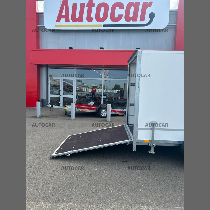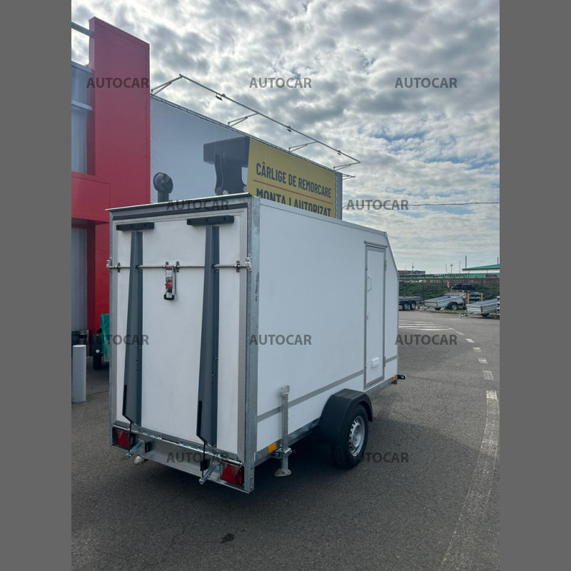 Einachsiger gebremster Kastenanhänger mit Abschrägung bis 1300 kg ist ein kompakter und praktischer Transporter, der häufig für den Transport verschiedener Güter verwendet wird. Die Wände des Anhängers bestehen aus Sperrholz, der Boden aus wasserfestem Sperrholz. Standardmäßig ist der Kasten in Weiß mit Seitentüren und Rampe ausgeführt. Der Anhänger ist mit einer hinteren Rampe ausgestattet, die als Auffahrtsrampe dient. Die Grundausstattung umfasst Bodenverankerungen zur Sicherung der Ladung mit Gurten oder Seilen, um ein Verrutschen während des Transports zu verhindern. Darüber hinaus verfügen diese Anhänger über hintere Stützfüße, die das Fahrzeug beim Be- und Entladen stabilisieren. Weitere Komponenten sind Unterlegkeile, die zur Sicherung des Anhängerrads verwendet werden, um eine Bewegung beim Stillstand zu verhindern.