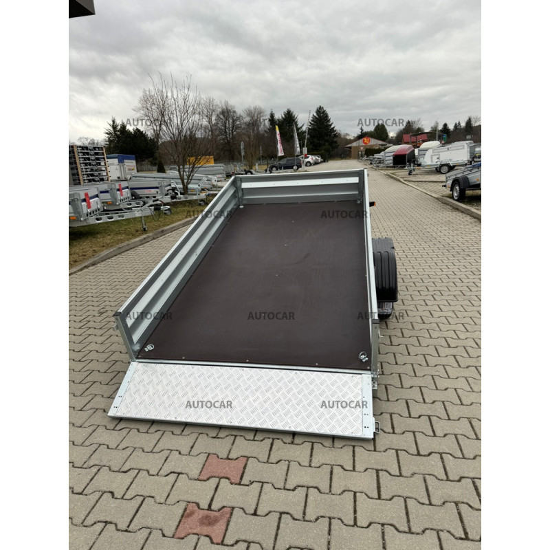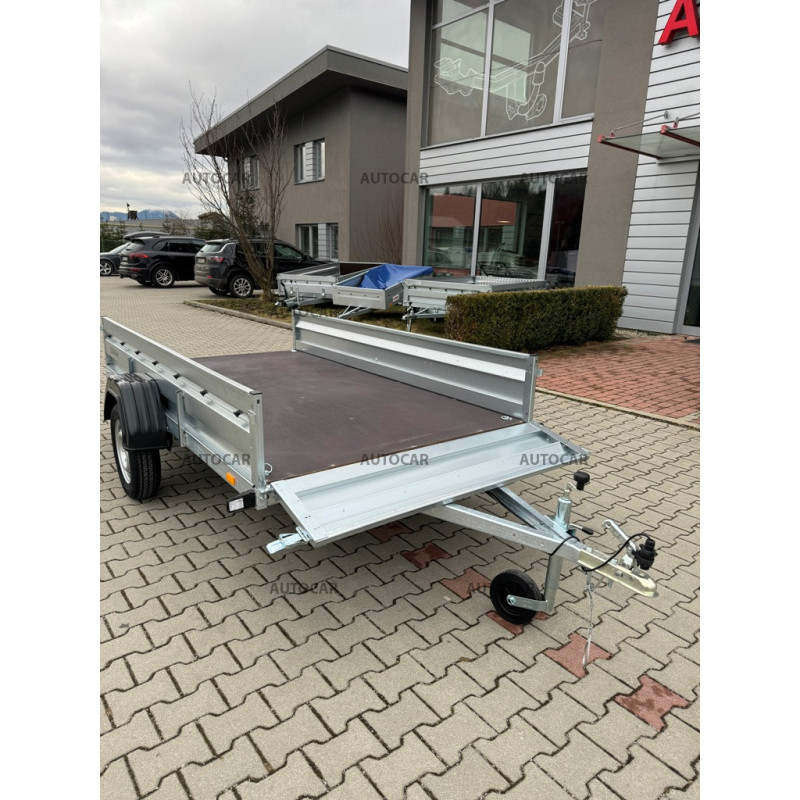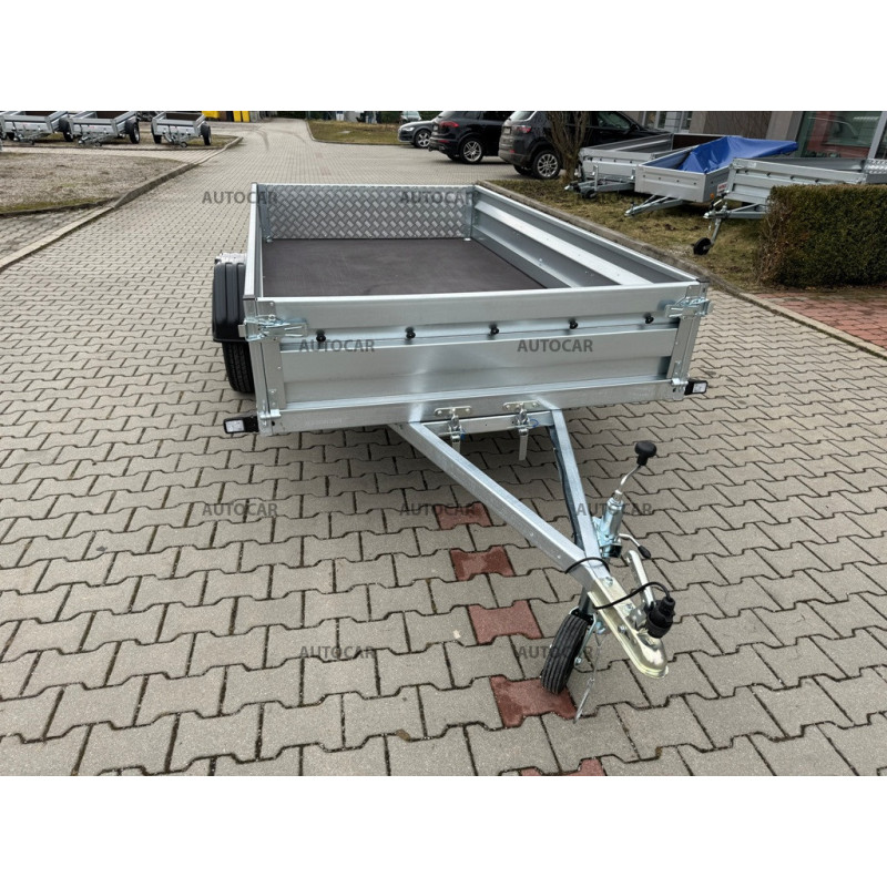 Einachsiger, ungebremst an der Deichsel klappbarer Pritschenwagen, wobei die gesamte Ladefläche umklappbar ist. Alle Elemente sind feuerverzinkt – Rahmen, Deichseln, Halterungen. Das Gesamtgewicht dieses Anhängers beträgt 750 kg, wodurch er für den Transport mittelschwerer Lasten geeignet ist. Mit einer bauartbedingten Geschwindigkeit von bis zu 140 km/h ist dieser Lkw für den schnellen und effizienten Gütertransport gerüstet. Seine breite Ladefläche mit den Maßen 2650 x 1320 x 350 mm bietet ausreichend Platz zum Beladen und Transportieren verschiedener Gegenstände. Dieser Wagen ist mit wasserdichtem, vor Feuchtigkeit, Regen geschütztem und rutschfestem Sperrholz ausgestattet, an dem 4x zurrmilden zur Sicherung der Ladung angebracht sind. Die Konstruktion dieses Wagens umfasst drei Querverstärkungen , die seine Gesamtstabilität und Haltbarkeit erhöhen. Die Seiten des Wagens werden im Kaltpressverfahren hergestellt, was eine hohe Festigkeit und Qualität des Materials gewährleistet. Vorne und hinten zu öffnen, auch für den Transport längerer Lasten geeignet. Dieser LKW ist eine ideale Wahl für diejenigen, die einen schnellen und zuverlässigen Gütertransport benötigen.