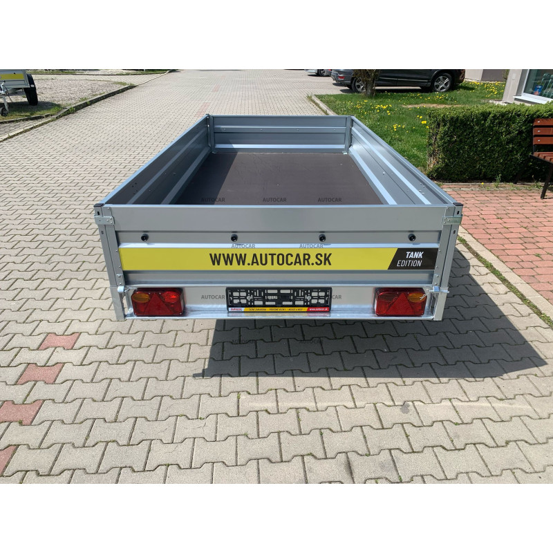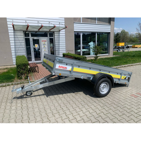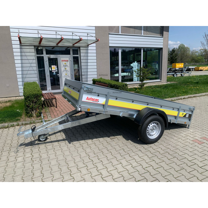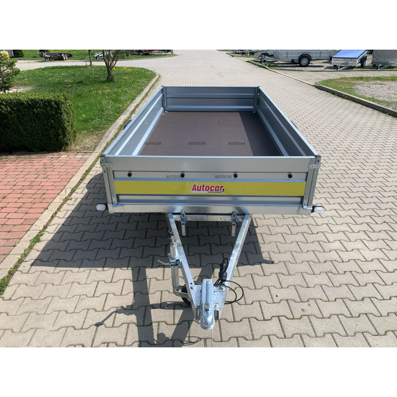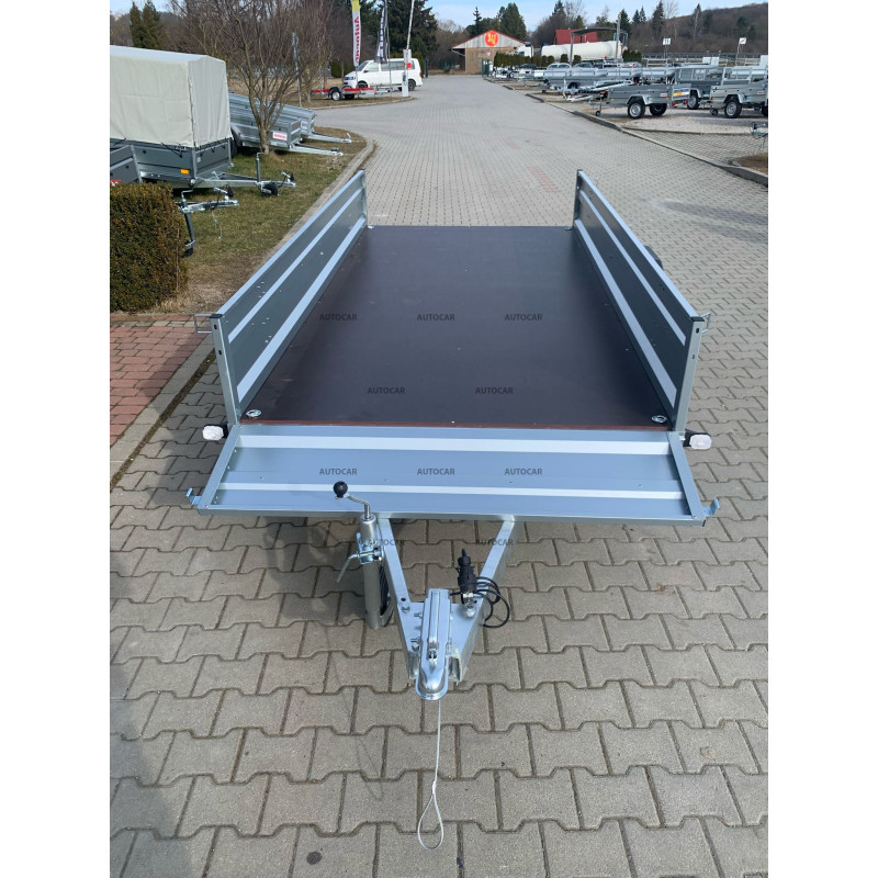 Zusammenklappbarer eine-achse ungebremst Anhänger mit robustem geschweißt 8cm hohen Rahmen, Querverstärkung und verstärkter Achse bis 1300kg. Es stellt eine zuverlässige Lösung für den Transport jeglicher Fracht dar. Sein U-Profil-Rahmen und seine C-Profil-Deichsel bestehen aus bis zu 2,5 mm dickem Material. Anhängerkupplung mit Tragfähigkeit von 1300kg. Seine breite Ladefläche mit den Maßen 3040 x 1560 und einer bordwände von 390mm, aber das Wichtigste ist die bordwände von bis zu 1mm, die Stabilität und Langlebigkeit garantiert. Dieser Wagen ist mit einem wasserfesten Sperrholzboden mit Bodenösen ausgestattet. Die klappbare Konstruktion der 8 cm hohen Deichsel ermöglicht ein einfaches Be- und Entladen der Ladung und macht diesen Anhänger für verschiedene Transportzwecke geeignet. anhänger verfügt neben der Kippfunktion zusätzlich über eine Frontöffnungsmöglichkeit und stützrad .