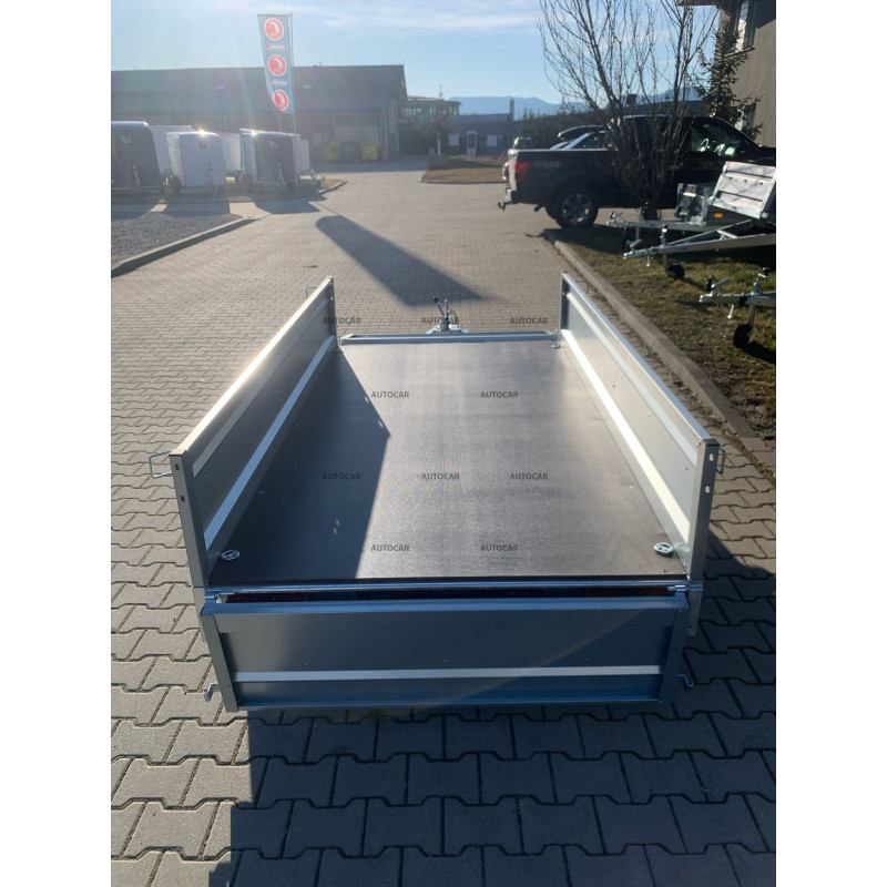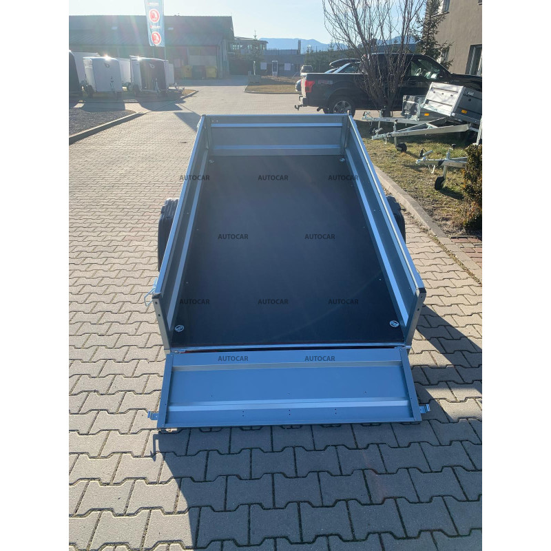 Der faltbare eine-achse ungebremst Anhänger mit robustem, 7 cm hohem geschweißt und Querverstärkung ist eine zuverlässige Lösung für den Transport jeglicher Ladung. Sein U-Profilrahmen und die C-Profildeichsel bestehen aus bis zu 2,5 mm dickem Material. Seine breite Ladefläche mit den Maßen 2359 x 1230 und einer bordwände von 390 mm, aber das Wichtigste ist die bordwände von bis zu 1 mm, die Stabilität und Haltbarkeit garantiert. Dieser Wagen ist mit einem wasserfesten Sperrholzboden und vier Bodenösen ausgestattet. Die klappbare Konstruktion der 8 cm hohen Deichsel ermöglicht ein einfaches Be- und Entladen der Ladung und macht diesen Anhänger für verschiedene Transportzwecke geeignet. anhänger verfügt neben der Kippfunktion auch über eine Frontöffnung und stützrad .