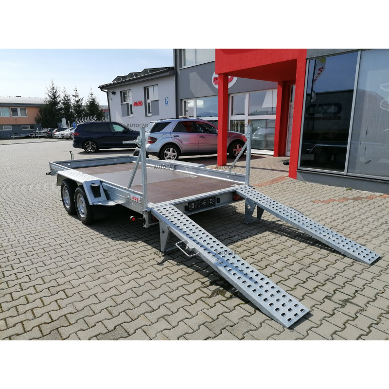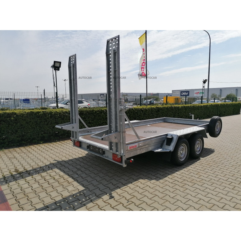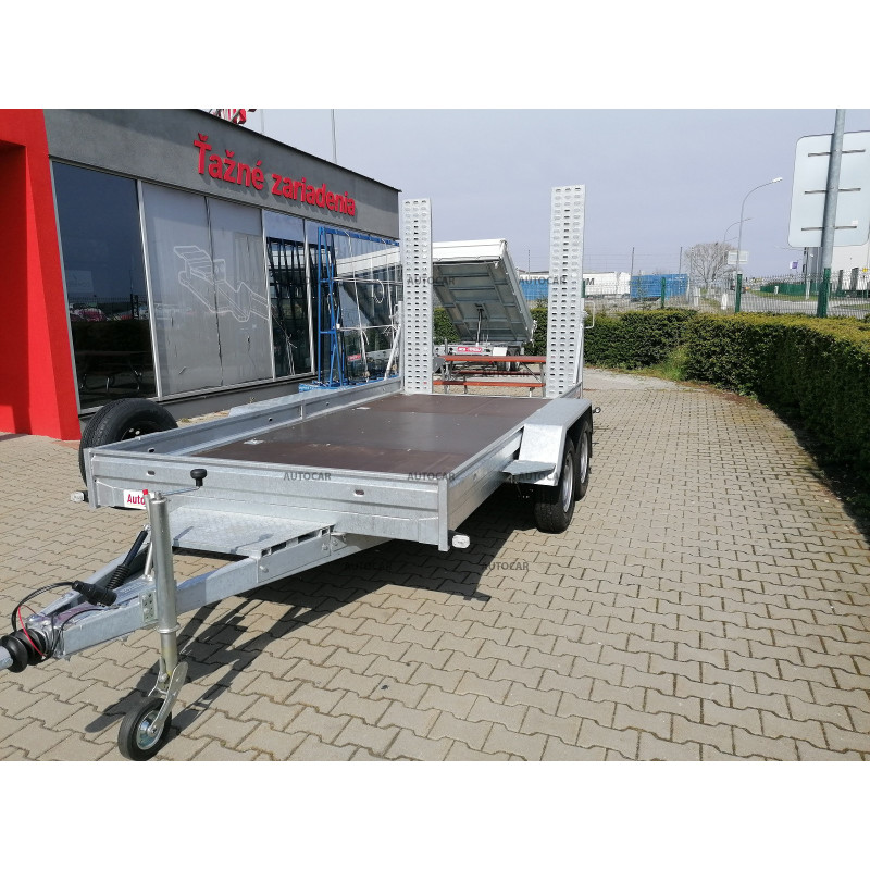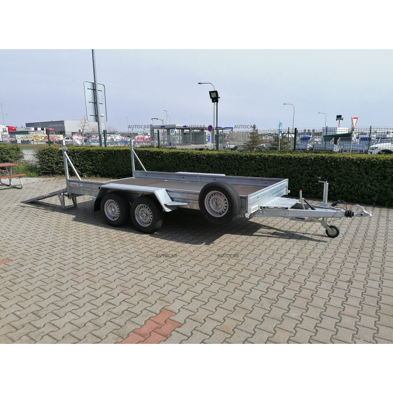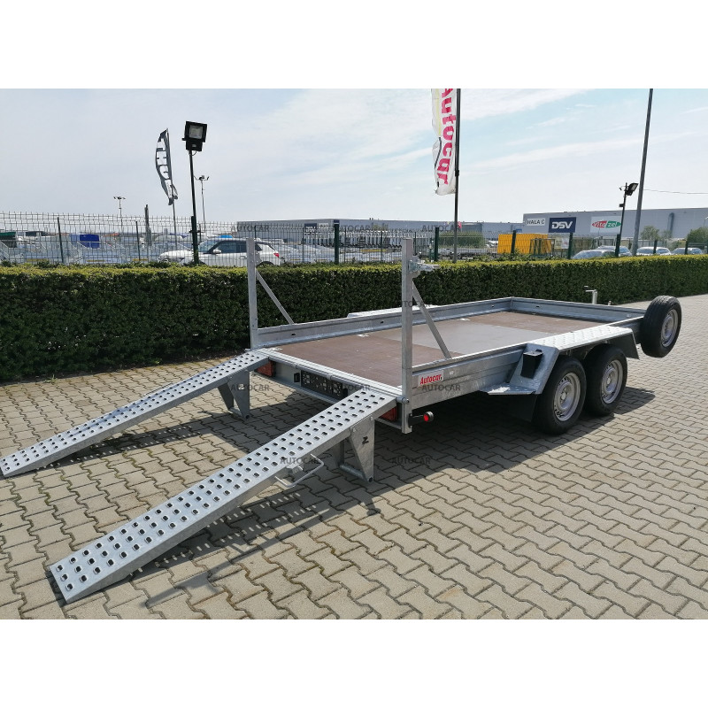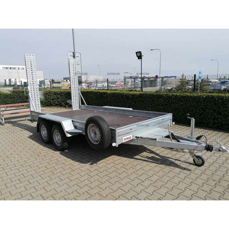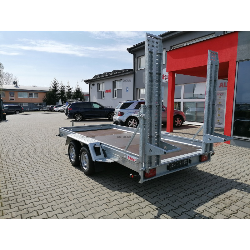 Zweiachsiger, gebremster Anhänger für den Transport von Baumaschinen mit Rädern neben der Ladefläche. Dieser Anhänger gehört zur Kategorie PROFI. Das einfache Beladen der Maschine erfolgt über Rampen. Die Eisenbordwände des Anhängers sind geschweißt (verbunden) direkt mit dem Rahmen des Anhängers, was sie sehr widerstandsfähig macht. Die Konstruktion besteht aus einer robusten, feuerverzinkten, geschweißten Stahlkonstruktion, die eine lange Lebensdauer garantiert. Zur Standardausstattung gehören: 8x Verankerungspunkte zur Sicherung der Maschine, Rampen, wasserfeste Sperrholzbodenplatte und ein Stützrad. Der Anhänger hat eine Garantie von 2 Jahren und ist für eine Geschwindigkeit von 140 km/h ausgelegt.