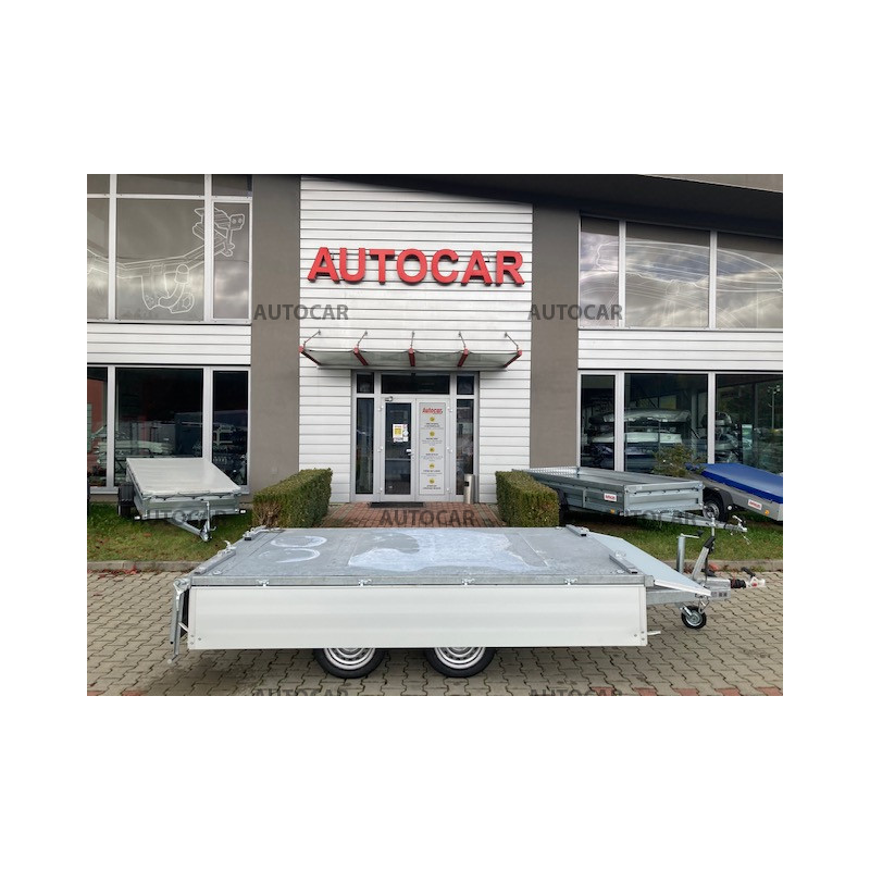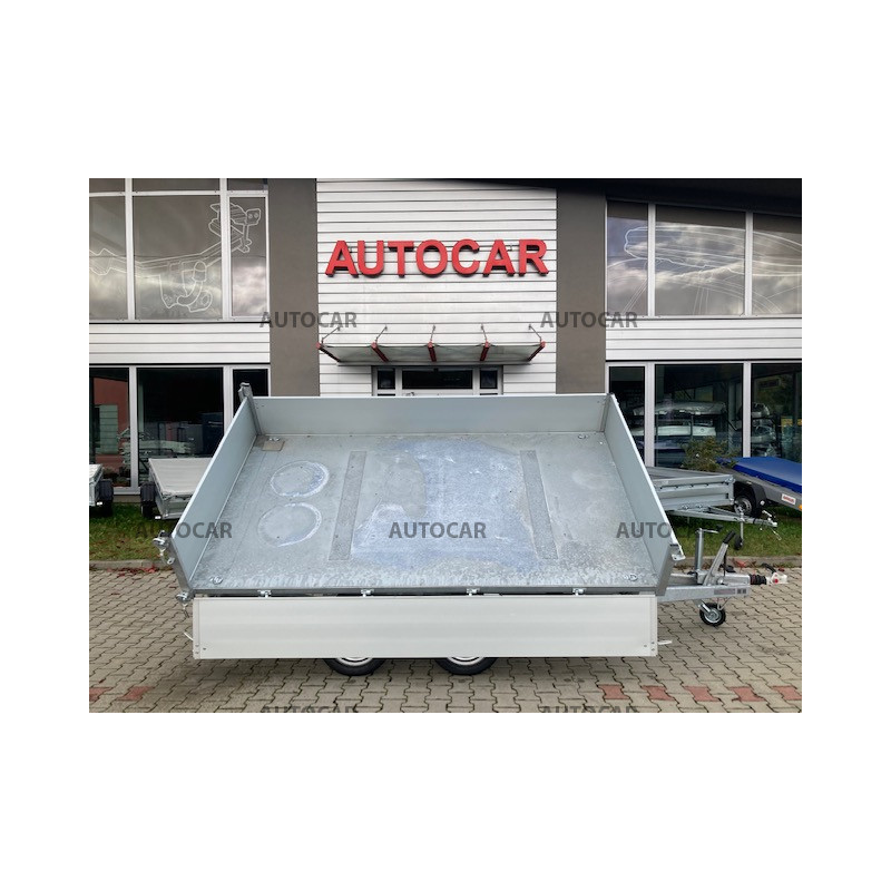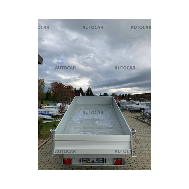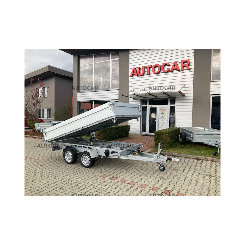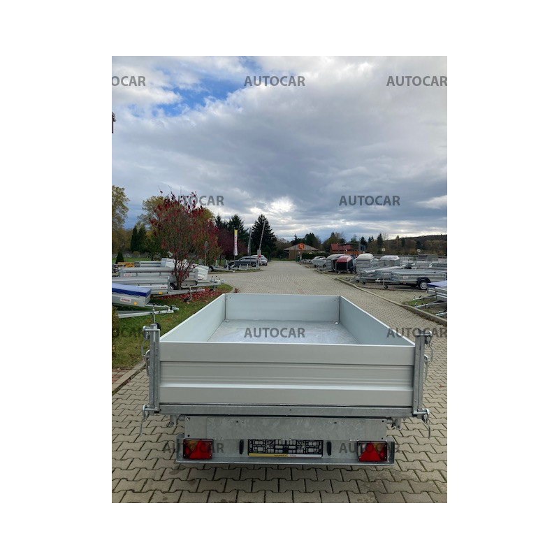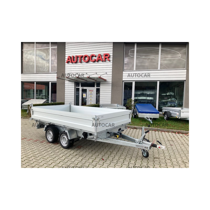 Trilaterale hydraulisch klappbar Anhänger mit Rädern liegen unter einer Ladefläche. Kippen hydraulischen Widder sichert Qualität. Änderung der Parteien Tilt bietet starke Seiten. Trailer kann mit Elektro-Motor ausgestattet werden. Die serienmäßige Ausstattung mit seitlichen Elementen aus Aluminium, die entfernt werden kann, ist ausgestattet .. Struktur besteht aus feuerverzinktem verschweißt robuste Stahlkonstruktion, die eine lange Lebensdauer gewährleistet. Die Basisversion ist: Ersatzrad mit Halterung, mit 6 Schlafplätzen in das Auge des Bodens, wasserfestem Sperrholz Boden mit einem Blatt mit einer Dicke von 3 mm bedeckt ist, unterstützt ein Unterlegkeil, Aluminium-Seitenteile, mit Öffnung hinten anheben, manuelle hydraulische Neigung kombiniert. Trailer hat eine Garantie von 2 Jahren und ist für Tempo 100 ausgelegt km / h.