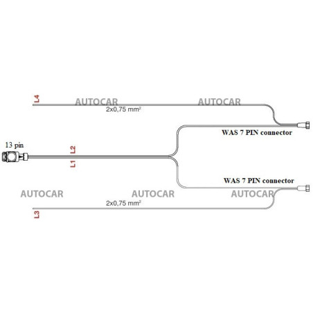 Kabel 13p, 9,7m mit Abgang für Positionsleuchte - WAS 7 PIN