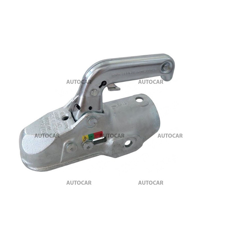Robustes Anhängergelenk aus Gusseisen, ausgelegt für ein Anhängergesamtgewicht von bis zu 3500 kg und eine maximale Stützlast von 200 kg.