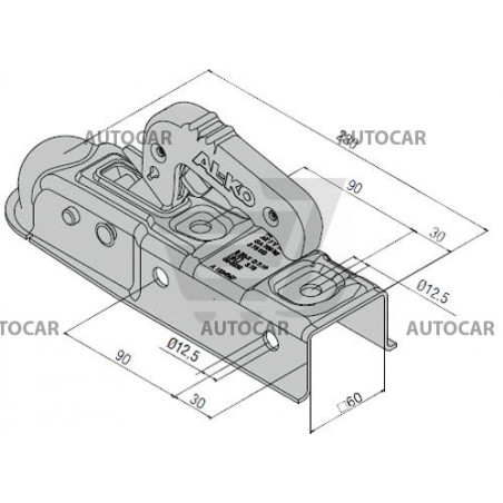 Zugkugelkupplung bis 750 kg für Deichselgröße 60 mm, max. Stützlast 75 kg