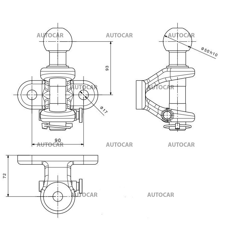 Kugelkopf Klemmvorrichtung mit zwei Schrauben an der Vorderseite mit einem 90 mm Lochabstand