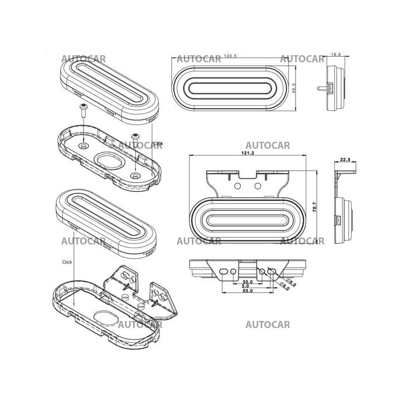LED-Positionsleuchte FRISTOM – universell für die rechte und linke Seite des Anhängers mit Kunststoffhalterung und Kabel.