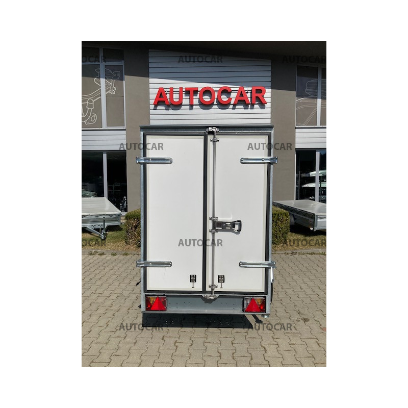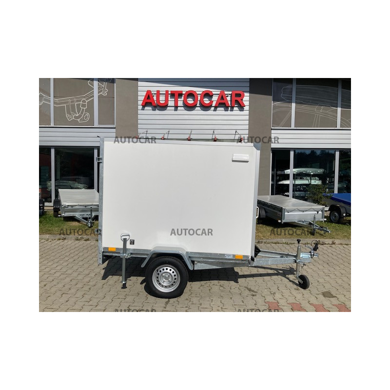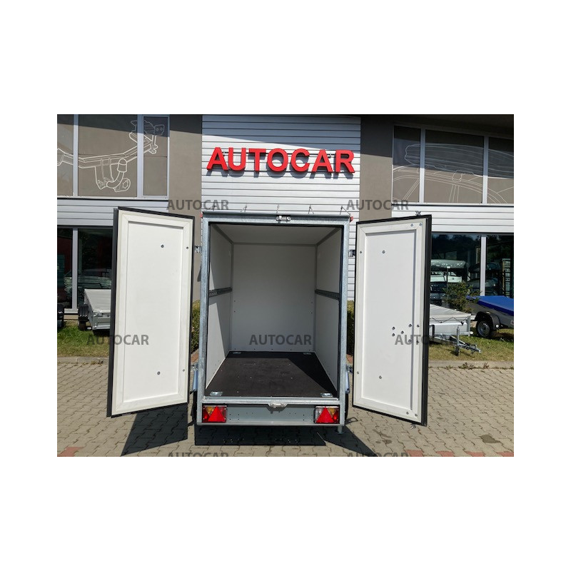 Die Wände des Anhängers sind aus Sperrholz, der Boden aus wasserfestem Sperrholz. In der Standardausführung die Anhänger in weiß.