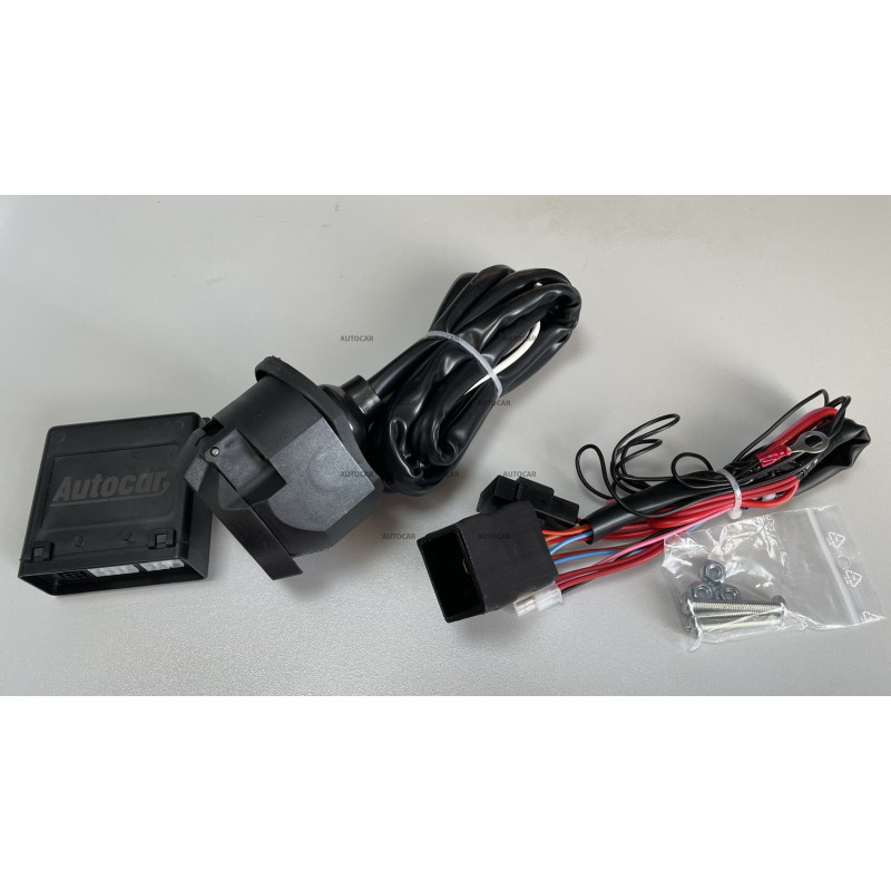 Fahrzeugspezifisch Verkabelung mit 13/8-poliger Buchse, die mit einem eigenen Modul (Steuergerät) ausgestattet ist und für neuere Fahrzeuge mit CanBus-System erforderlich ist.