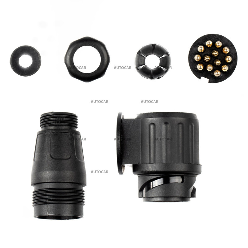 Dieser 13-polige Kunststoffstecker mit Kunststoffschutzhülle ist ideal für 12-Volt-Bordnetze in Fahrzeugen wie Anhängern und Wohnwagen. Die Schutzhülle aus gehärtetem Kunststoff sorgt für eine längere Lebensdauer und Widerstandsfähigkeit gegen äußere Einflüsse und gewährleistet zuverlässige Verbindungen auch unter rauen Bedingungen. Mit seinen kompakten Abmessungen von 60 x 90 x 190 mm ist der Stecker leicht zu handhaben und für eine Vielzahl von Fahrzeugen geeignet.