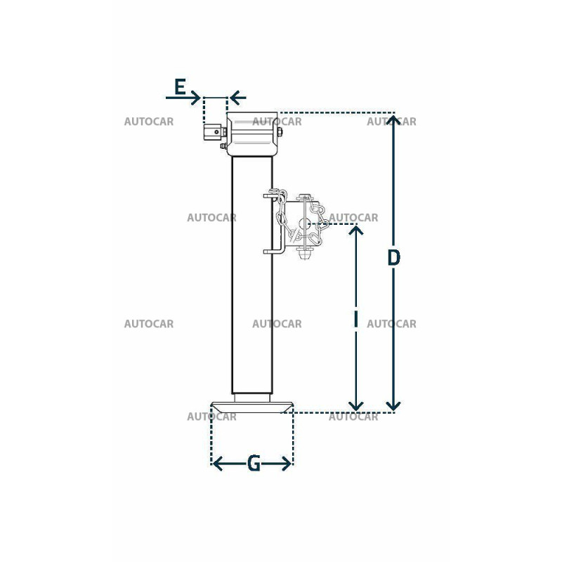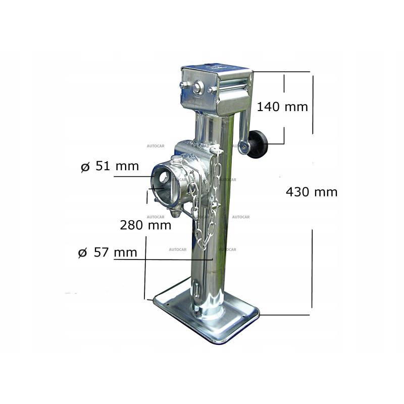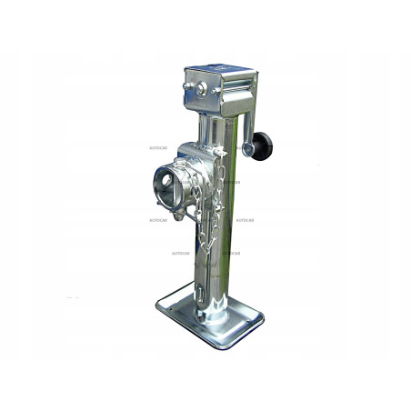 Das kürzere Stützbein ist mit einer Kurbel bis zu einer maximalen Standlast von 1300 kg auf der Achse drehbar. Mit Abmessungen von 430 x 280 mm und einem hervorragenden hub von bis zu 250 mm.