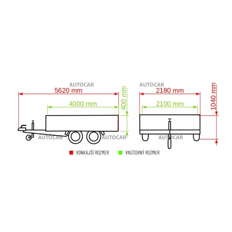 Der universal Anhänger mit zwei Achsen mit den Rädern unter die Laderfläche. Der Aufbau ist verzinkt und komplet geschweisst. Der Anhänger ist mit 2 Garantie und Konstruktionsgeschwindigkeit: 140 km/h.