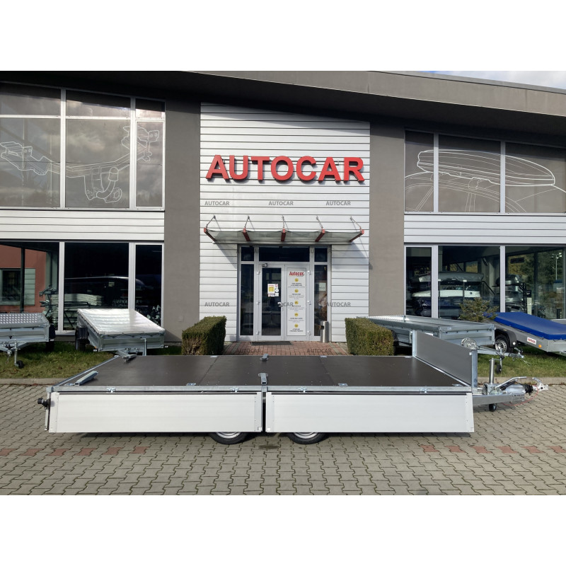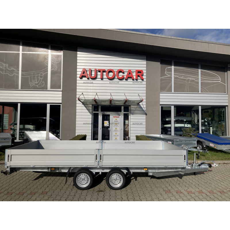 Der universal Anhänger mit zwei Achsen mit den Rädern unter die Laderfläche. Der Aufbau ist verzinkt und komplet geschweisst. Der Anhänger ist mit 2 Garantie und Konstruktionsgeschwindigkeit: 140 km/h.