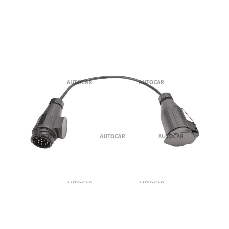 Kabeladapter zum Anschluss eines Anhängers mit 13-poligem Stecker an ein Auto mit 13-poliger Steckdose. Es besteht aus einer 13-poligen Kabelbuchse, einem 13-poligen Stecker und einem YLYs 7x0,75mm2+1x1,00mm2 Kabel für die Automobilindustrie.